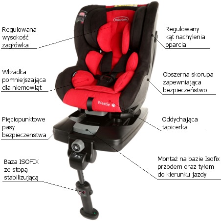 Fotelik BabySafe przeznaczony dla dzieci z grupy wagowej 0-18 kg (od urodzenia do około 4 lat). W pierwszym etapie montowany jest tyłem do kierunku jazdy (0-13 kg), gdy dziecko jest starsze zmienia się ustawienia fotelika na przodem do kierunku jazdy (13-18 kg). Dziecko zapinane jest za pomocą pięciopunktowych pasów bezpieczeństwa. Obszerna skorupa fotelika Westie w połączeniu z bazą ISOFIX ze stopą stabilizującą pozwala na jak najdłuższe przewożenie dziecka w najbezpieczniejszy sposób - tyłem do kierunku jazdy.