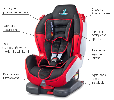 Konstrukcja fotelika łącząca szeroki zakres regulacji z bezpieczeństwem i sportowym designem to gwarancja bezpieczeństwa i zadowolenia. Fotelik cechuje funkcjonalność i praktyczność.