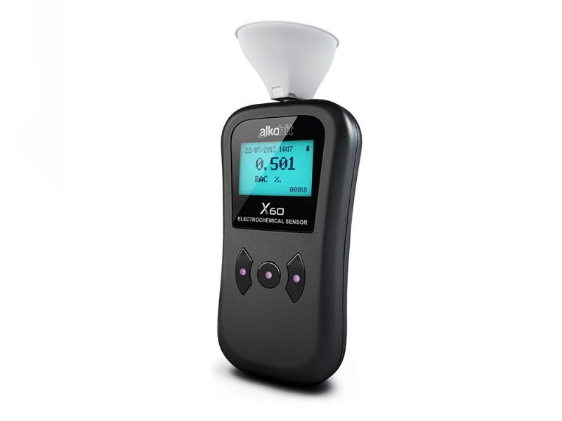 Alkohit X60 to dokładne i funkcjonalne urządzenie. Możliwość przeprowadzania pomiarów przy użyciu nasadki lejkowej oraz wbudowana na stałe bateria litowo-jonowa ładowana z zasilacza sieciowego lub poprzez port USB komputera gwarantują niskie koszty eksploatacji. Bateria litowo-jonowa cechuje się brakiem efektu pamięci oraz samorozładowania, co zapewnia wyjątkowo długą żywotność oraz gotowość do pracy nawet po dłuższym czasie nieużywania. Zastosowanie ogniwa dużej pojemności to wiele godzin pracy bez konieczności ładowania. Nasadka lejkowa umożliwia przeprowadzenie testu bez użycia ustnika, co pozwala na szybkie i komfortowe przebadanie dużych grup osób.