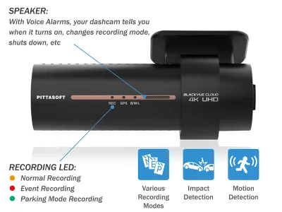 Ciesz się Dwukierunkową komunikacją głosową ze sterownikiem z aplikacji za pośrednictwem zintegrowanego głośnika i mikrofonu BlackVue.