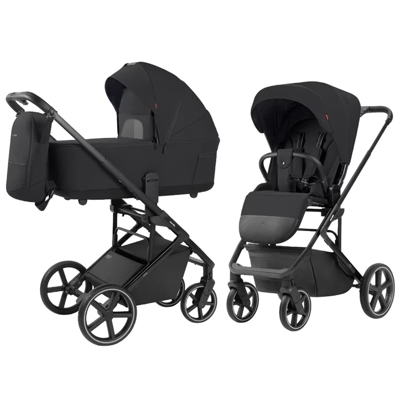 Gondola jest wykonana z materiałów łączonych. Solidna podstawa i wielowarstwowy materiał tekstylny zapewniają komfortowy mikroklimat wewnątrz gondoli. Taka konstrukcja zmniejsza wagę produktu i umożliwia jego składanie.