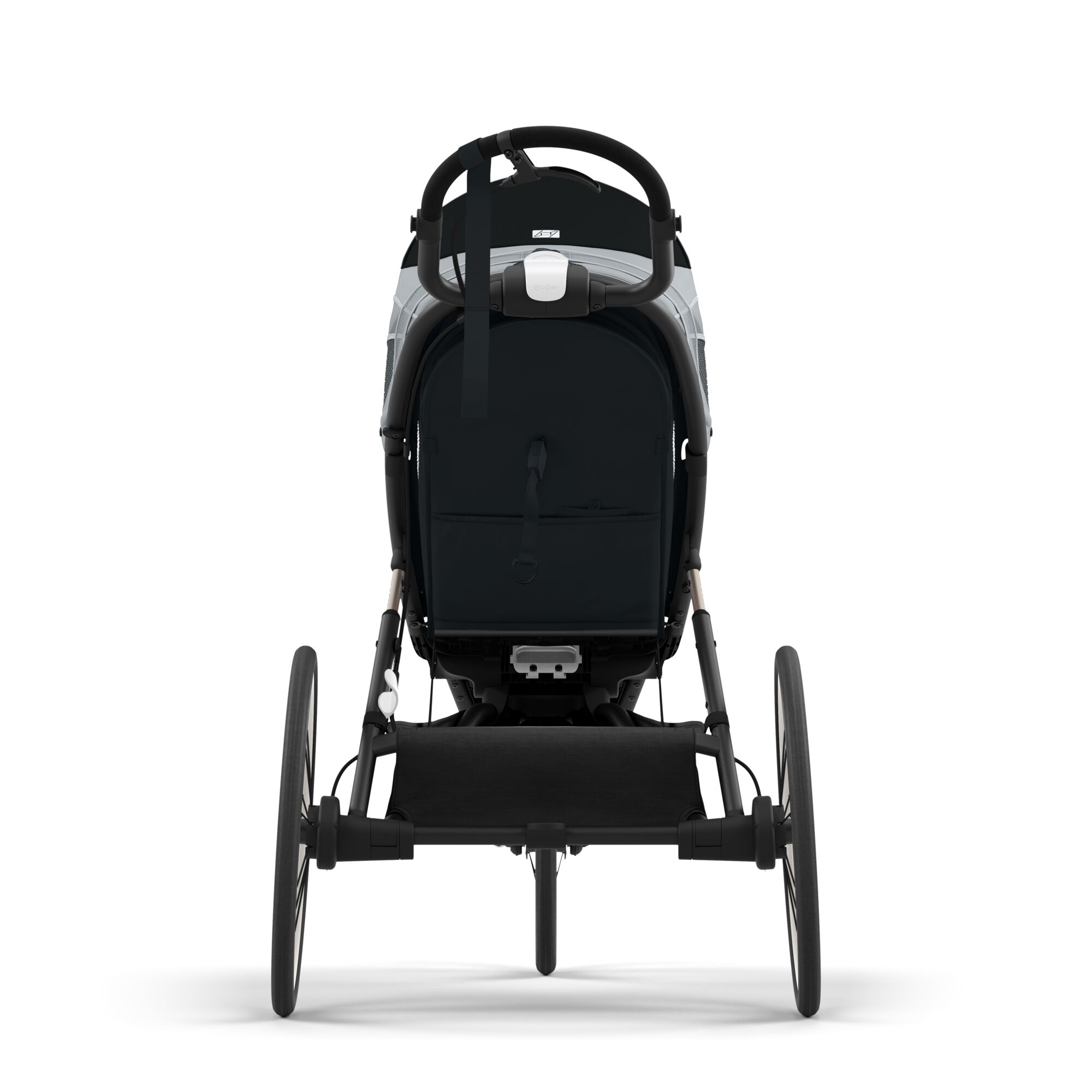 Budka przeciwsłoneczna XL, wykonana z materiału zapewniającego ochronę na poziomie UPF50+, osłania dziecko przed niesprzyjającymi warunkami atmosferycznymi. Posiada wizjer i siateczkowe okienko umożliwiające sprawdzanie dziecka w ruchu. Siateczkowe okienka w budce oraz boki fotelika zapewniają cyrkulację powietrza odpowiedzialnego za chłodzenie w upalne dni. Kieszeń z tyłu pozwala schować klucze i małe rzeczy. Ma ona także specjalną przegrodę na smartfon. Pozostałe rzeczy można schować w przestronnym koszu cargo o pojemności 5 kg.