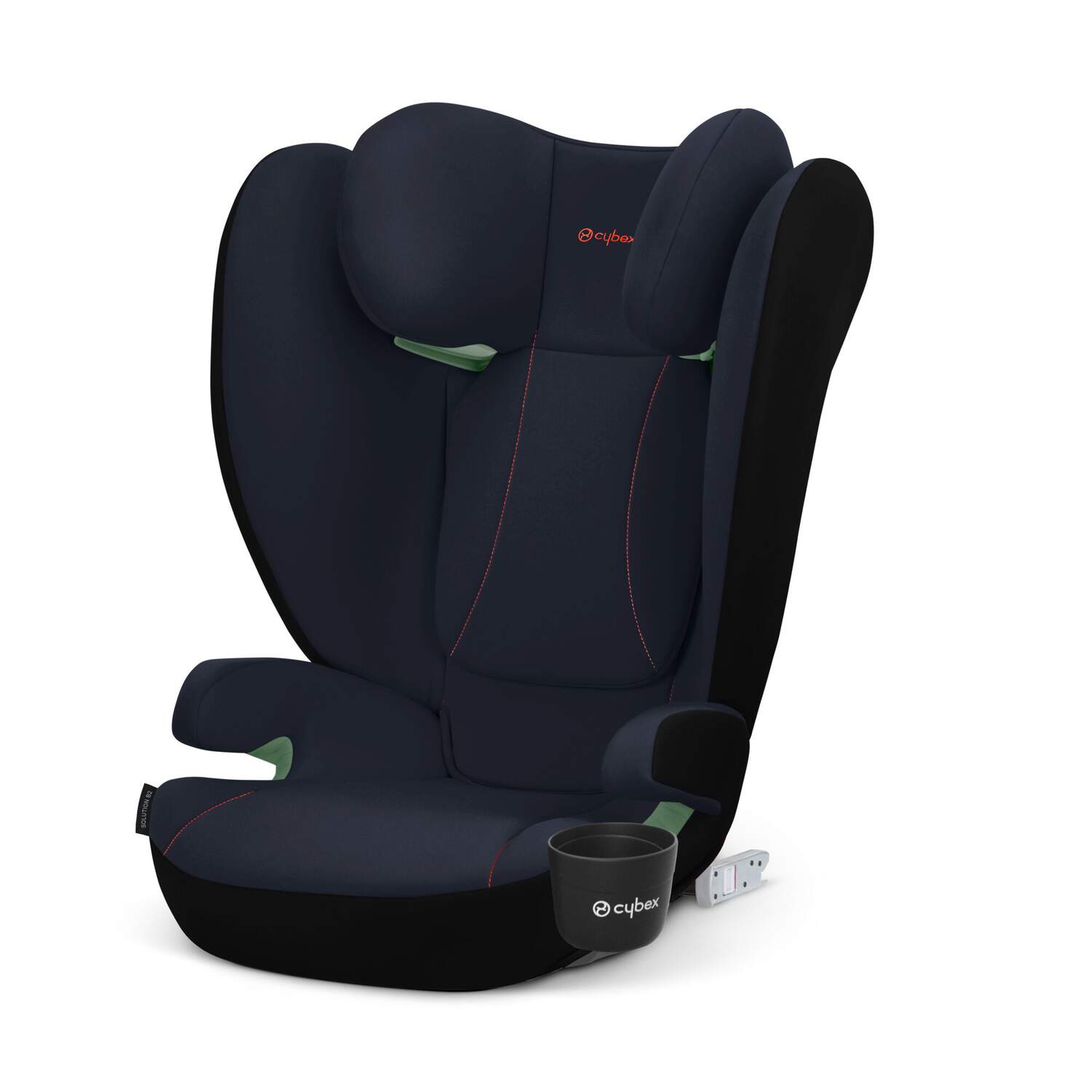 Cybex Solution B2 i-Fix posiada złącza ISOFIX, za pomocą których wygodnie przypniemy go do haczyków znajdujących się za kanapą samochodu. W ten sposób zwiększamy stabilność fotelika w samochodzie. Do uzyskania pełni bezpieczeństwa, dziecko należy zapiąć pasem samochodowym. Zielone prowadnice ułatwiają przeprowadzenie pasa.