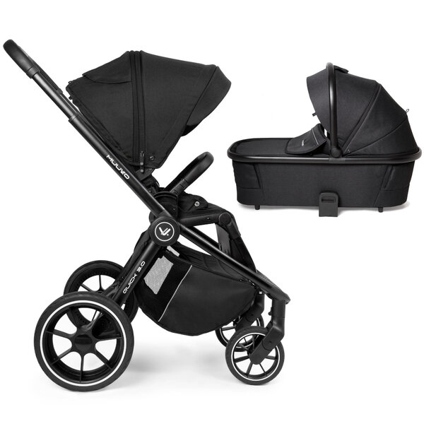 To jeden z najbardziej popularnych wózków dziecięcych w kolorze czarnym. Muuvo Quick 3.0 zachwyca precyzyjnym układem jezdnym i bezawaryjnymi żelowymi kołami. Czarna rama i tapicerka nadają modelowi Quick 3.0 niepowtarzalnego stylu. A wykończenie rączki wózka i pałąka skórą ekologiczną dodaje mu elegancji. Wysoka jakość użytych do produkcji materiałów zapewnia dziecku bezpieczeństwo i wygodę w czasie spacerów. Wbudowane pasy w siedzisku spacerówki utrzymują jego ciało w bezpiecznej strefie. Muuvo Quick 3.0 to dowód na to, że czarny wózek pozwala zachować właściwą temperaturę ciała dziecka, nawet w czasie spacerów w upalne dni, dzięki wbudowanym okienkom wentylacyjnym.