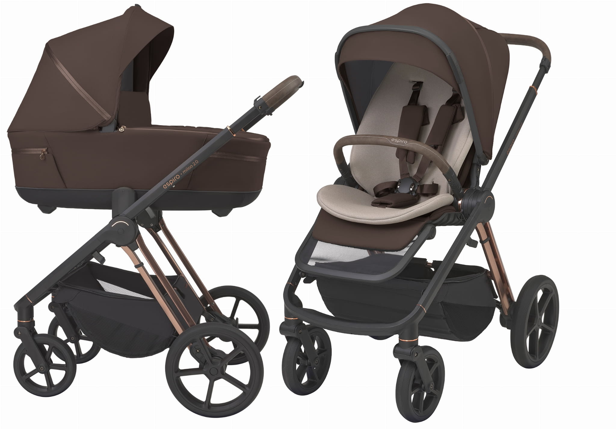 W espiro miloo 2.0 zastosowano nowy, praktyczny system automatycznego wypięcia gondoli w uchwycie do przenoszenia, a także przyciski pamięci przy siedzisku w wózku spacerowym. Wózek zyskał unowocześniony podnóżek siedziska, który zapewnia jeszcze większy komfort dziecka podczas spacerów.
