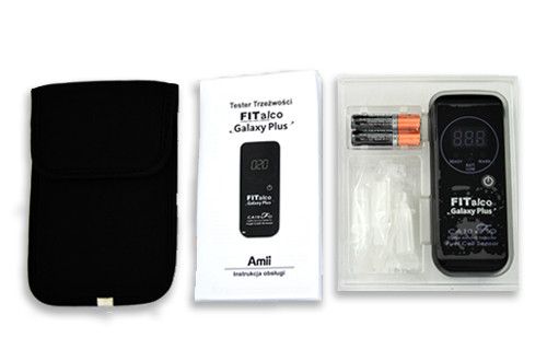 Tester trzeźwości Fitalco Galaxy Plus to alkomat z dokładnym platynowym czujnikiem elektrochemicznym i wysokim zakresem wskazań do 4 promili. Urządzenie wskazuje z dokładnością do setnych części promila. Bardzo prosta obsługa oraz duża szybkość przeprowadzania testów pozwalają na sprawne przeprowadzenie większej ilości pomiarów. Pomiędzy kolejnymi testami należy zachować 2 minutowy odstęp. Niewielki rozmiar oraz waga pozwalają na noszenie alkomatu w kieszeni spodni lub damskiej torebce. W przypadku, gdy wskazanie będzie się zawierało pomiędzy 0,20 ~ 3,99 promila włączy się czerwony alarm ostrzegawczy, a na wyświetlaczu również pojawi się dokładny cyfrowy wynik.