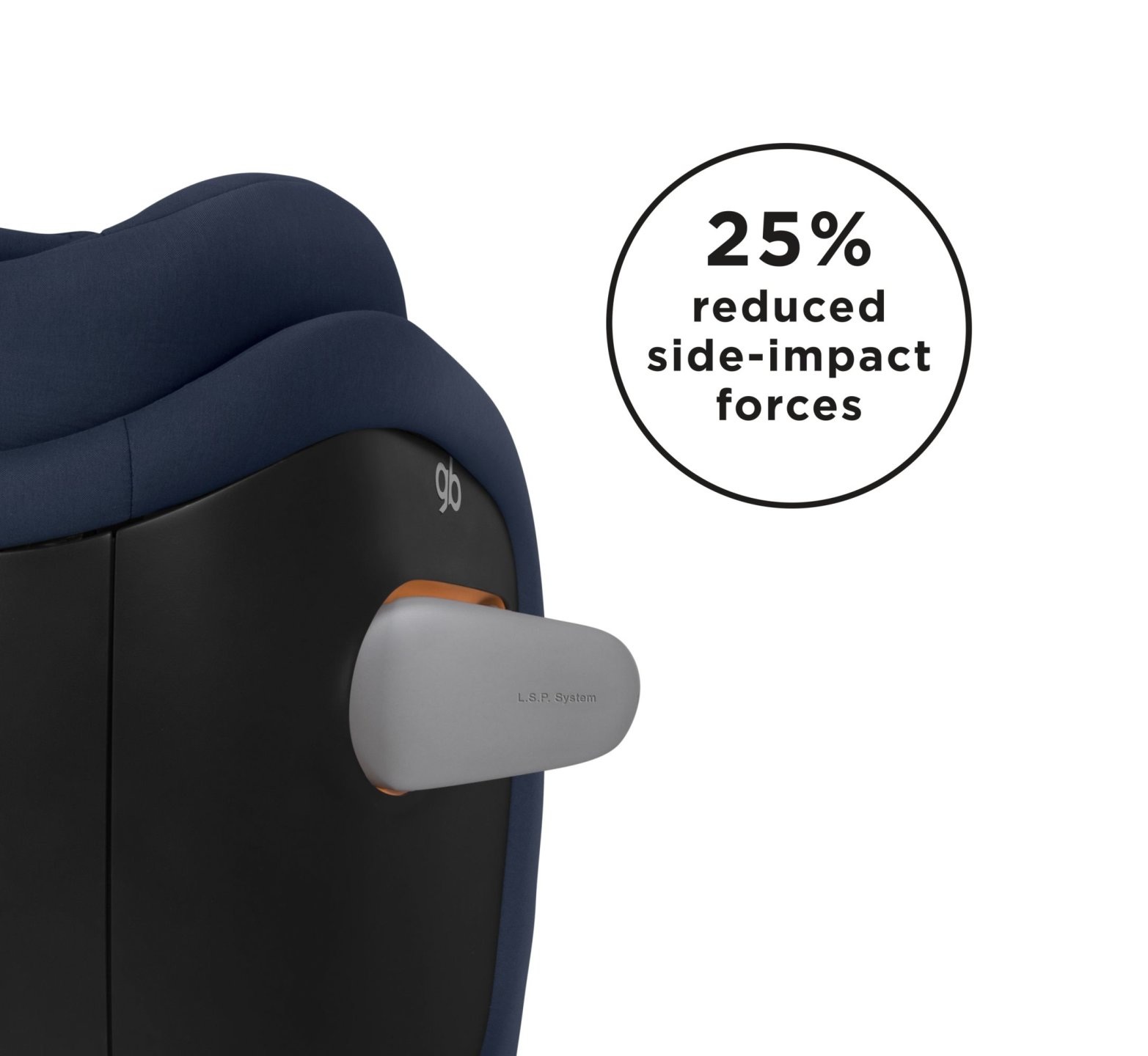 Skorupa absorbująca energię w połączeniu ze zintegrowanym systemem L.S.P. redukuje siły uderzenia i dodatkowo chroni dziecko.