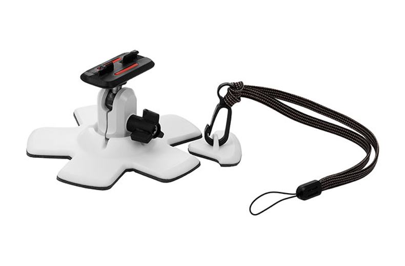 Uchwyt jest wyposażony w dużą powierzchnię samoprzylepną oraz metalowe ramię mocujące, dzięki którym kamera jest bardzo stabilna.